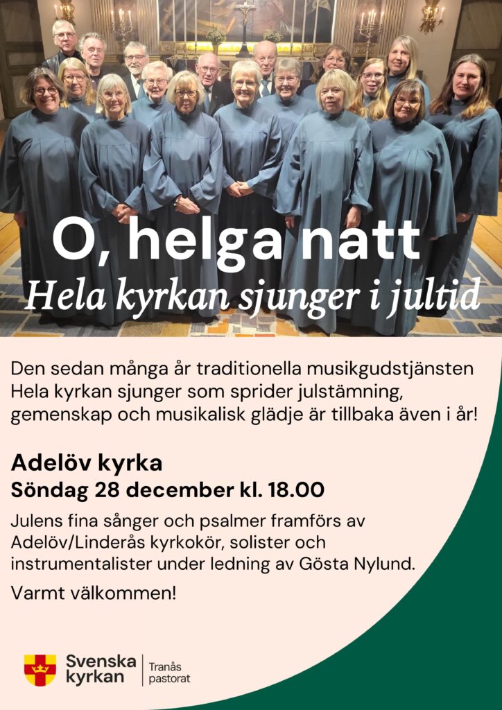 Julens fina sånger och psalmer framförs av Adelöv/Linderås kyrkokör, solister och instrumentalister under ledning av Gösta Nylund.